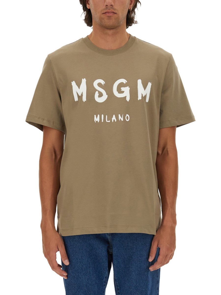 Scarpe / Italia / MSGM T-SHIRT IN JERSEY DI COTONE CON STAMPA LOGO PENNELLATO 2024