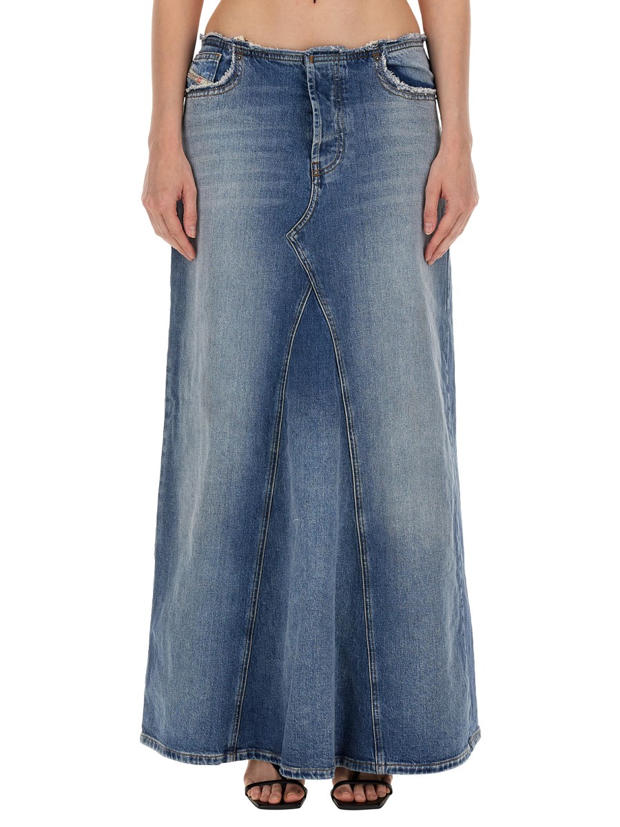 Questa maxi gonna in denim di Diesel presenta una chiusura con bottoni e cerniera per una vestibilità facile e sicura. Il classico tessuto denim aggiunge un tocco senza tempo a qualsiasi outfit, rendendola un capo versatile per occasioni sia casual che eleganti. La lunghezza maxi conferisce una silhouette perfetta, da abbinare ai vostri top e alle vostre scarpe preferite per un look elegante. Ideale per chi apprezza il comfort e lo stile in un unico capo chic.
