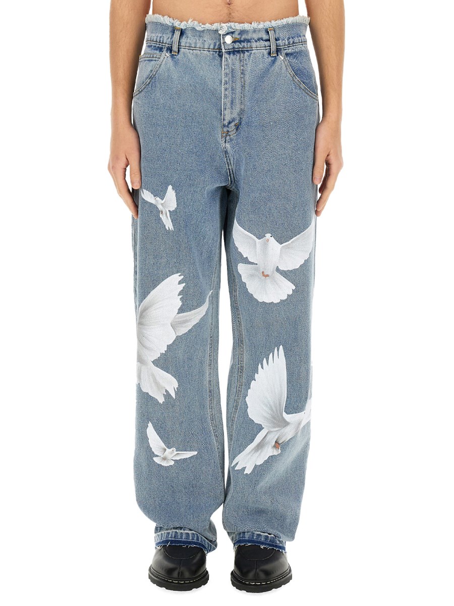 Questo paio di jeans di 3. Paradis è l'aggiunta perfetta al vostro guardaroba casual e offre stile e comfort. Realizzati in denim di alta qualità, questi jeans presentano un colore blu slavato che aggiunge un tocco di fascino vintage a qualsiasi outfit. L'esclusivo disegno delle colombe freedom sulla tasca posteriore aggiunge un elemento giocoso e accattivante.