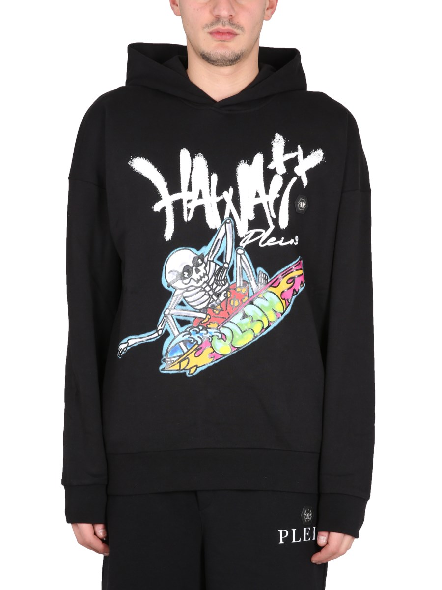 PHILIPP PLEIN FELPA IN COTONE CON CAPPUCCIO E STAMPA LOGO