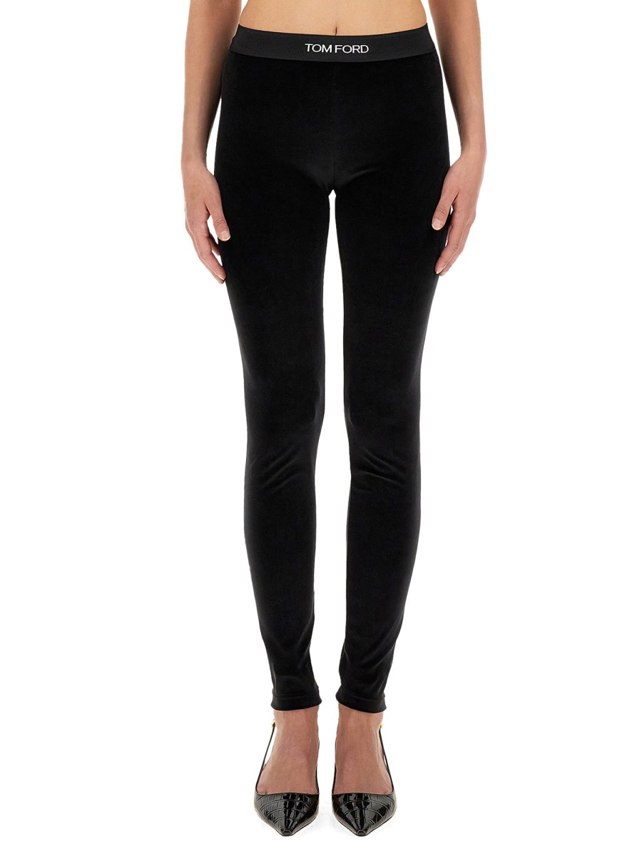 TOM FORD LEGGINGS CON LOGO IN VELLUTO STRETCH 2024 | Scarpe