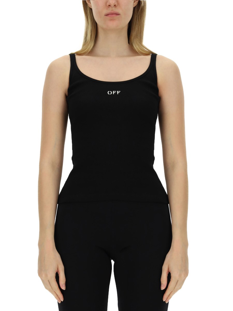 Scarpe / Italia / OFF-WHITE TOP IN MAGLIA DI VISCOSA CON LOGO 2024