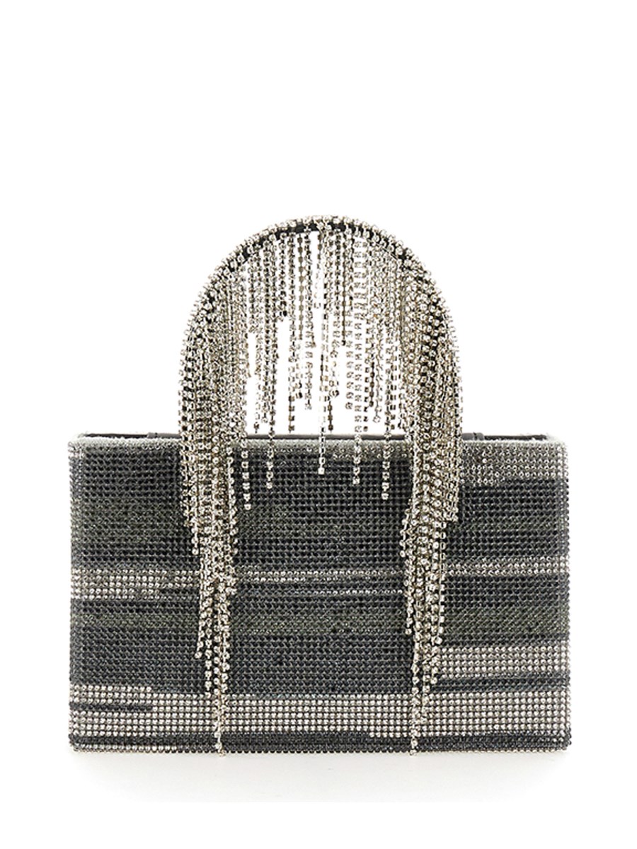 - DOPPIO MANICO SUPERIORE CON FRANGE DI CRISTALLI- TRACOLLA REGOLABILE E REMOVIBILE- CHIUSURA MAGNETICA- CRISTALLI ALL-OVER- DIMENSIONI: A 13 CM X L 20 CM X P 5.5 CM- 100% PELLE