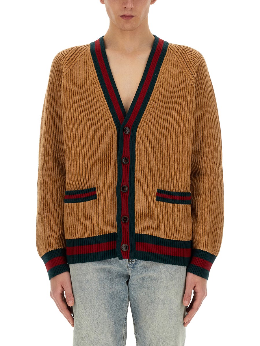 Scarpe / Italia / GUCCI CARDIGAN IN LANA LAVORATA A MAGLIA CON NASTRO WEB 2024