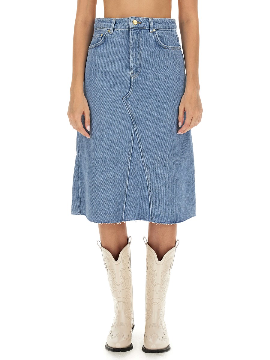 GANNI GONNA MIDI IN DENIM DI COTONE