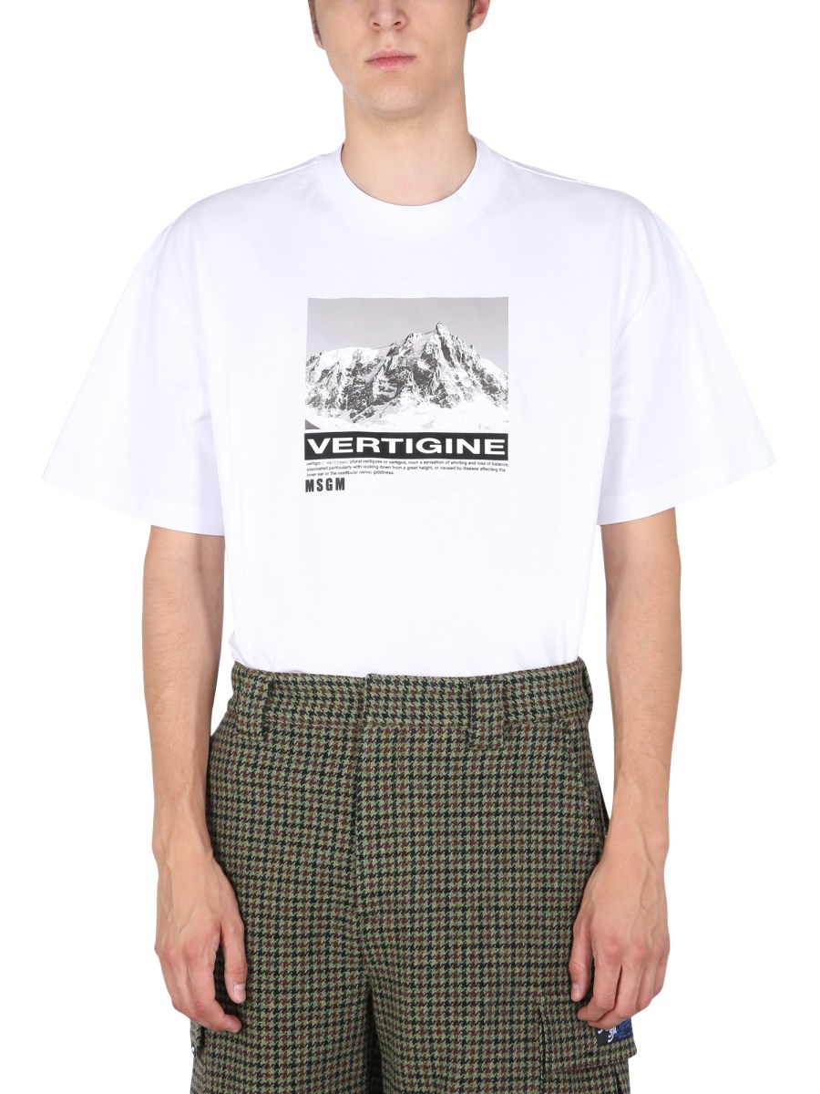 MSGM T-SHIRT GIROCOLLO IN COTONE CON STAMPA VERTIGINE