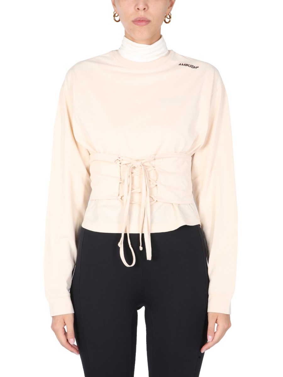 AMBUSH T-SHIRT IN COTONE CON CINTURA A CORSETTO 2024 | Scarpe