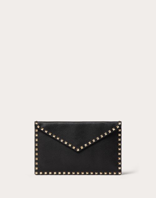 Pouch Rockstud Valentino Garavani in vitello granato.- Borchie finitura Platino- Chiusura con bottone magnetico- Quattro vani portacarte- Dimensioni: W29,5xH19 cm- Made in Italy