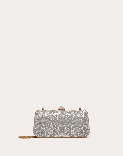 Minaudiere Valentino Garavani Carry Secrets con applicazione di strass e chiusura con elemento borchia ricoperto di strass.- Parti metalliche finitura dorata- Fodera in nappa- Tracolla con catena amovibile- Altezza (luce) tracolla: 51 cm- Dimensioni: W21xH10xD4 cm- Made in Italy