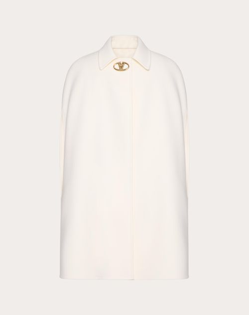 Cappa in Compact Drap - Chiusura frontale con dettaglio logo metallico - Compact Drap (90%Lana Vergine, 10%Cashmere) - Sfoderata - Lunghezza 85 cm da punto spalla per la taglia 40 IT - La modella è alta 176 cm e indossa una taglia 40 IT - Made in ItalyIl look è completato con una borsa Valentino Garavani Alltime e scarpe Valentino Garavani The Bold Edition.