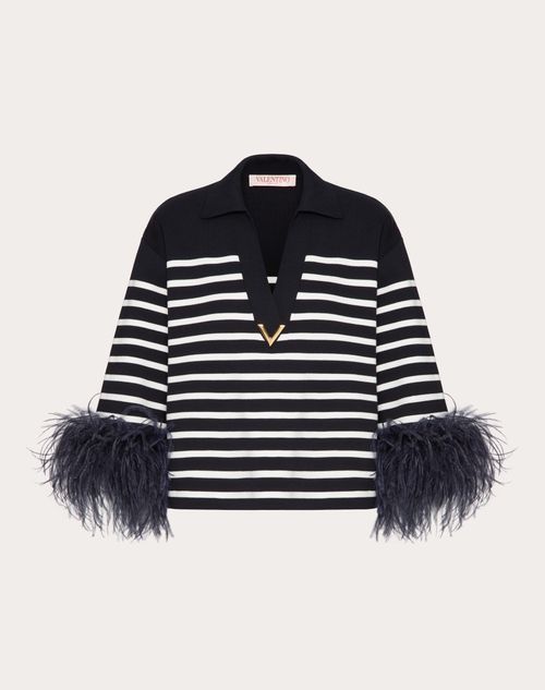 Maglia in Cotone con piume- Ricamo di piume ai polsi - Scollo kaftano - Dettaglio V Gold frontale - Cotone (100%Cotone) - Lunghezza 54 cm da punto spalla per la taglia S IT - Lunghezza manica 60 cm da centro dietro per la taglia S IT - La modella è alta 176 cm e indossa una taglia S IT - Made in ItalyIl look è completato con una borsa Valentino Garavani Ohval e scarpe Valentino Garavani The Bold Edition.