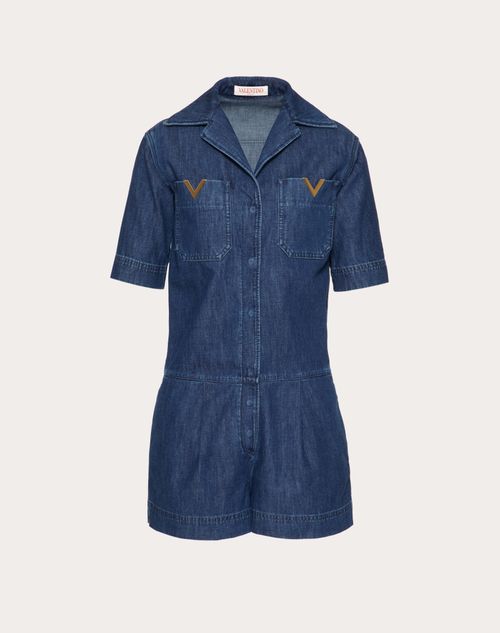 Tuta Valentino in Chambray Denim - Dettaglio V Gold su tasche- Chiusura frontale - Chambray Denim (100%Cotone)- Sfoderata- Lunghezza 103 cm da punto spalla per la taglia 40 IT- Lunghezza manica 25,6 cm da centro dietro per la taglia 40 IT- Fondo gamba 32,5 cm per la taglia 40 IT- Lunghezza interna della gamba 5 cm per la taglia 40 IT- La modella è alta 176 cm e indossa una taglia 40 IT- Made in ItalyIl look è completato con scarpe Valentino Garavani Valentino Garavani Tan-go.