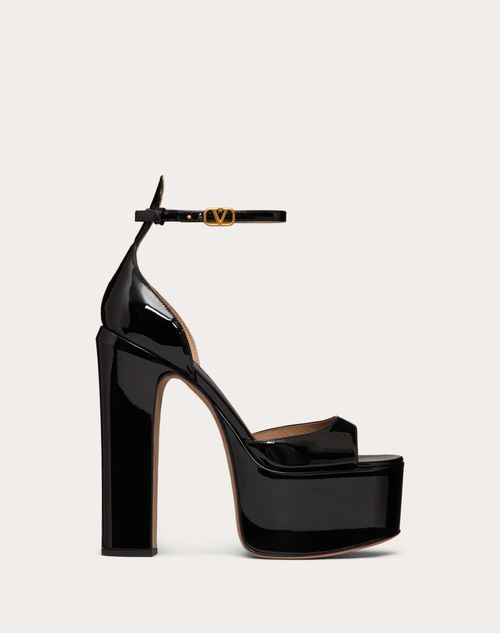 Sandalo con plateau Valentino Garavani Tan-Go in vernice - Cinturino alla caviglia regolabile con fibbia personalizzata VLogo Signature - Plateau e tacco largo fasciati in pelle - Altezza tacco 155mm/6,1'' con 55mm/2,2'' plateau - Made in Italy