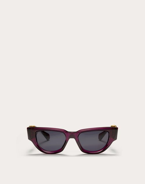 II - Occhiale da sole Cat-eye in acetato con VLogo.Nata da un paesaggio onirico, intrisa di eleganza e inclusività, la nuova COLLEZIONE VALENTINO EYEWEAR riafferma la scelta di autenticità e la tradizione couture della Maison attraverso la cura artigianale giapponese.CARATTERISTICHE - Occhiale da sole Cat-eye in acetato giapponese intagliato viola cristallino.- Aste in acetato con oro giallo con fibbia rimovibile in titanio con VLogo. - Tag RFID sull'estremità inferiore dell'asta sinistra.- Lente base 4 grigio scuro, contrasto elevato CR-39.- Protezione UV 100%.- Predisposizione per lenti graduate.- Occhiali da sole da donna.- Realizzato a mano in Giappone.PACKAGING- Custodia in pelle riciclata con tracolla e panno per la pulizia.DIMENSIONI- Lunghezza aste: 14,5 cm- Larghezza totale Occhiale da sole: 14,4 cm- Larghezza lenti: 5 cm- Altezza lenti: 3,4 cm- Ponte: 1,8 cm