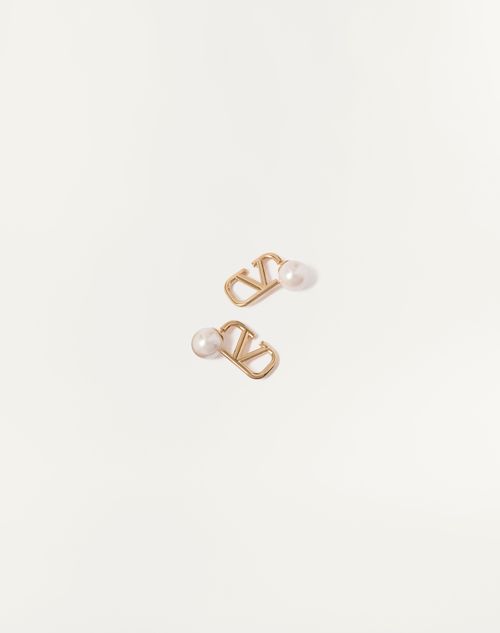 Orecchini Valentino Garavani VLogo Signature in metallo e resina - Finitura in colore oro 18 - Diametro perle: 12 mm - Dimensione: 2.5 cm - Chiusura con sfera in resina - Made in Italy