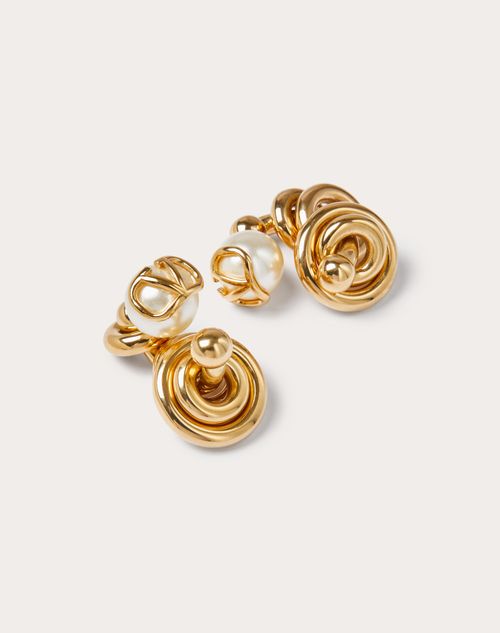 Orecchini Valentino Garavani VLogo Signature Pearl in metallo e perle in vetro - Finitura in colore oro 18 - Diametro perle: 1,4 cm - Dimensione: 3,1x3,4 cm - Chiusura con perno per lobi forati - Made in Italy