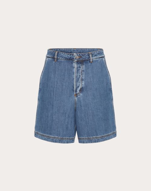 Bermuda Valentino in denim con V Detail metallica- Regular fit- V Detail metallica applicata su tasca posteriore- Cinque tasche- Composizione: 100% Cotone- Lunghezza: 44,5 cm in taglia 30 IT- Fondo gamba: 36 cm in taglia 30 IT- Il modello è alto 187 cm e indossa una taglia 30 IT- Made in ItalyIl look è completato con scarpe Valentino Garavani Valentino Garavani Runboot.