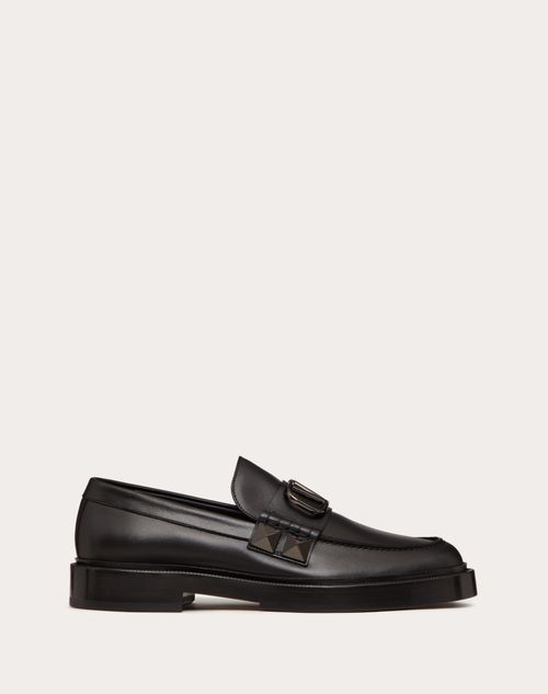 Mocassino Stud Sign Valentino Garavani in Vitello- Dettaglio VLogo Signature finitura tono su tono- Maxi borchie 18x18mm finitura tono su tono- Suola in cuoio con inserti in gomma- Made in Italy