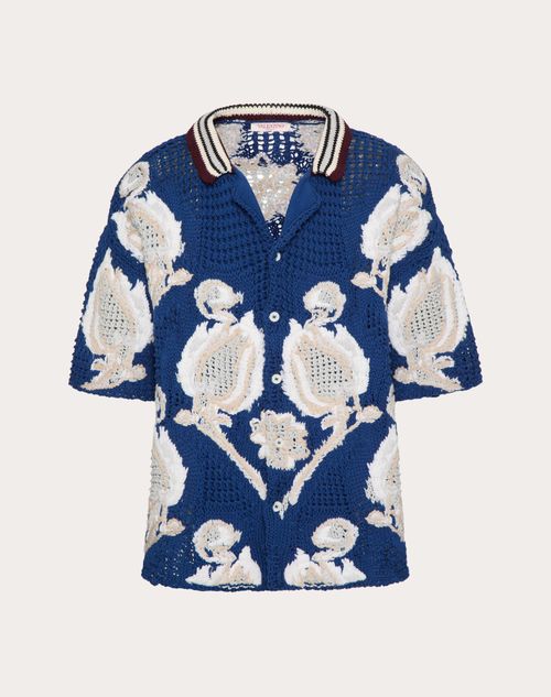 Camicia da bowling Valentino in cotone con motivo Metamorphos Tulips all over- Loose fit- Motivo Metamorphos Tulips all over- Chiusura con bottoni- Composizione: 100% Cotone- Lunghezza: 72 cm dall'attaccatura posteriore del collo in taglia 46 IT- Il modello è alto 187 cm e indossa una taglia 46 IT- Made in ItalyIl look è completato con scarpe Valentino Garavani Valentino Garavani Runboot.