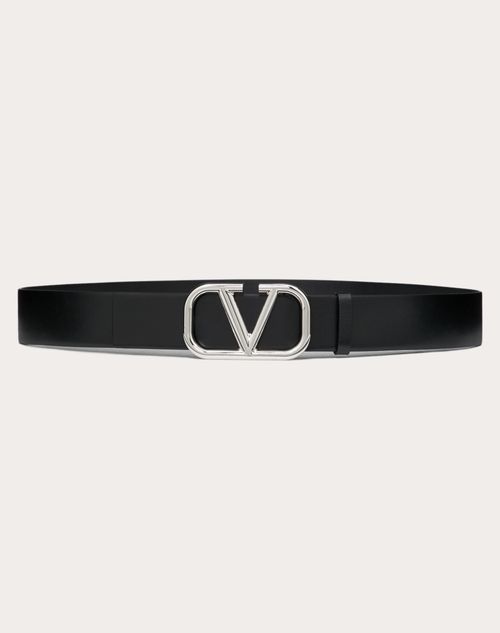 Cintura VLogo Signature Valentino Garavani in Vitello- Metallerie finitura Palladio- Fibbia VLogo Signature- Dimensioni: H40 mm- Made in Italy