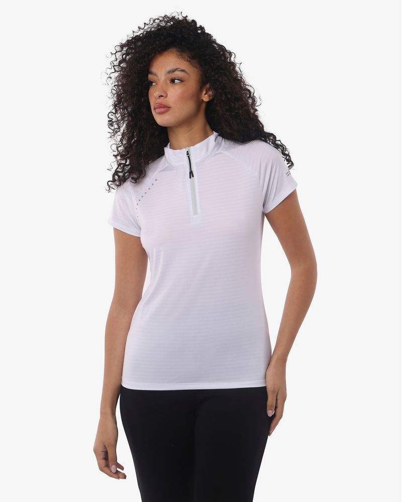 T-shirt a collo alto con manica raglan realizzata in tessuto tecnico. Chiusura con zip