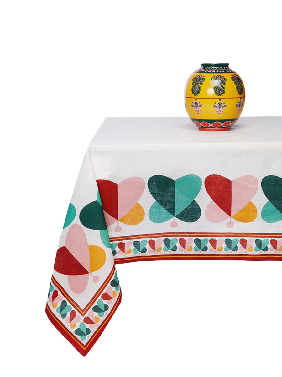 LA DOUBLEJ TOVAGLIA LARGE IN LINO CON STAMPA FARFALLE