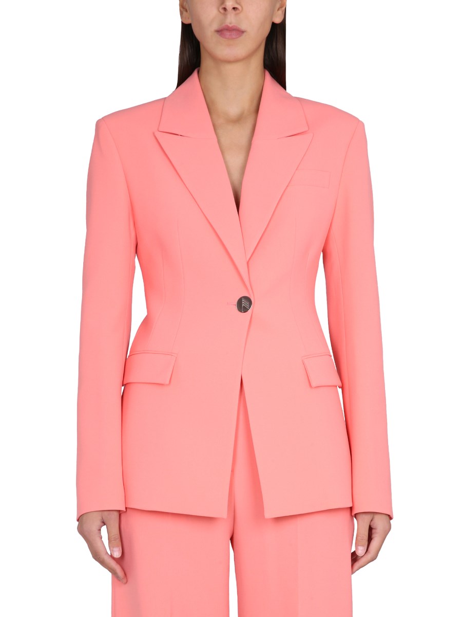 composizione- REVERS A DENTE- CHIUSURA MONOPETTO CON BOTTONE- UNA TASCA APPLICATA AL PETTO- DUE TASCHE LATERALI- 68% POLIESTERE, 29% VISCOSA, 3% ELASTAN - LA MODELLA È ALTA 180 CM E INDOSSA LA TAGLIA 42