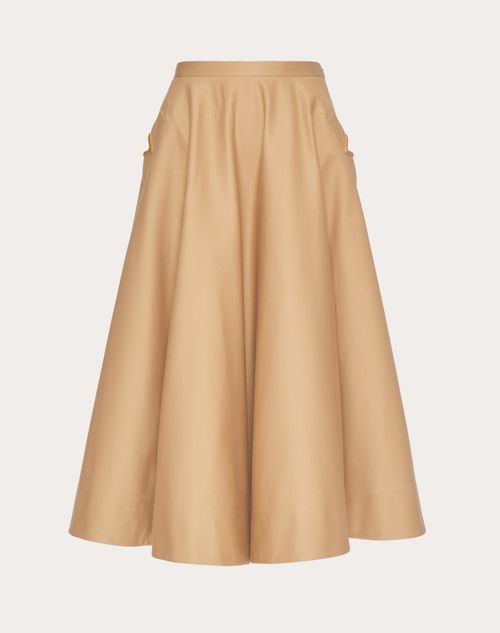 Gonna midi Valentino in Cotone Stretch - Dettaglio V Gold su tasche- Chiusura laterale con zip invisibile - Cotone Stretch (98%Cotone, 2%Elastan) - Sfoderata - Lunghezza 86,3 cm da punto vita per la taglia 40 IT - La modella è alta 176 cm e indossa una taglia 40 IT - Made in ItalyIl look è completato con scarpe Valentino Garavani Nite Out.