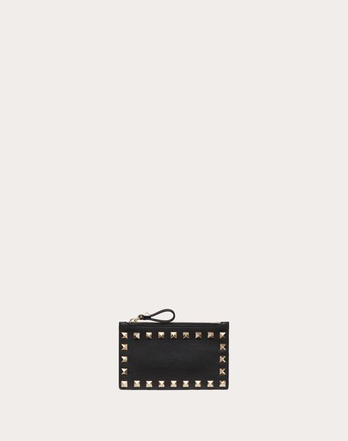 Portamonete e carte Rockstud Valentino Garavani in vitello - Borchie finitura platino - Scomparto portamonete con chiusura a zip - Quattro vani portacarte - Dimensioni: W13.5xH8 cm - Made in Italy