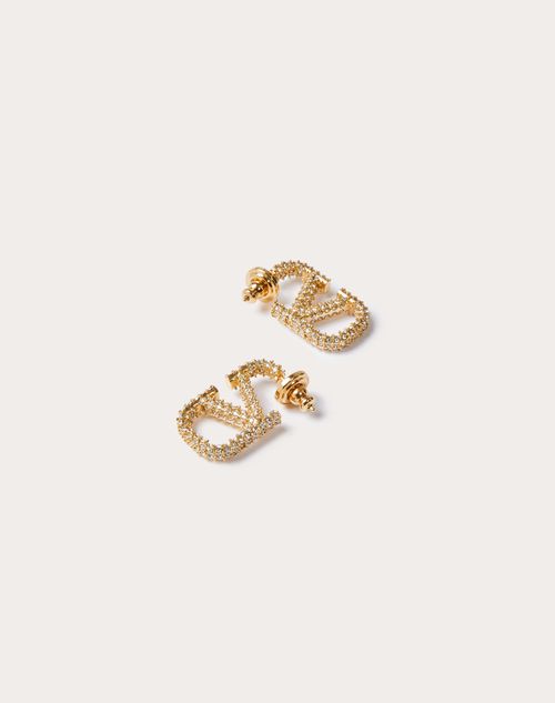 Orecchini Valentino Garavani VLogo Signature in metallo e cristalli Swarovski® - Finitura in colore oro 18- Altezza: 2,5 cm - Larghezza: 1,5 cm- Chiusura con perno per lobi forati- Made in Italy