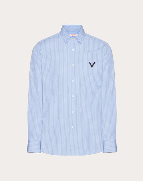Camicia manica lunga Valentino in popeline di cotone con V Detail metallica- Over fit- V Detail metallica su tasca sul petto lato sinistro indossato- Chiusura con bottoni- Composizione: 100% Cotone- Lunghezza: 76 cm dall'attaccatura posteriore del collo in taglia 39 IT- Il modello è alto 187 cm e indossa una taglia 39 IT- Made in ItalyIl look è completato con scarpe Valentino Garavani True Act.