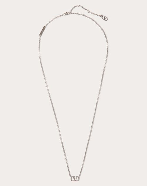 Collana VLogo Signature Valentino Garavani in metallo-Finitura in colore Palladio-Dimensione logo: 15X9mm-Catena regolabile: da 63 a 72 cm-Made in Italy