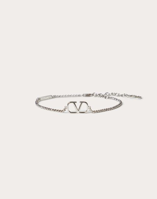 Bracciale VLogo Signature Valentino Garavani in metallo-Finitura in colore Palladio- Dimensione logo: 15x9 mm-Chiusura regolabile: da 19,5 a 21,5 cm-Made in Italy