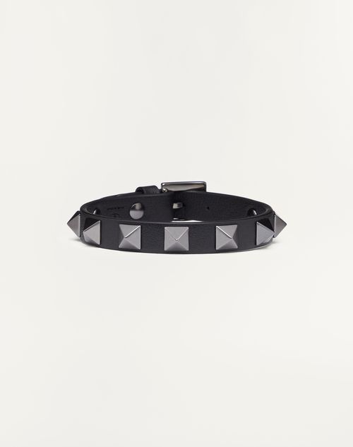 Bracciale Rockstud Valentino Garavani in vitello - Borchie Finitura rutenio nero - Cinturino regolabile - Made in Italy